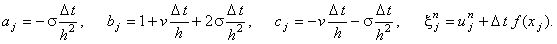 Коэффициенты, соответствующие уравнению (4.10), для разностной схемы (10.9) имеют вид: