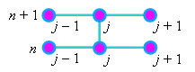 Разностный шаблон (см. рисунок), характеризующий разностную схему (6.7),