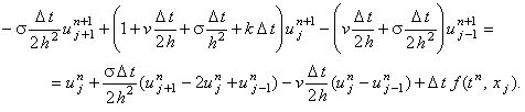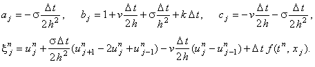Запишем разностную схему Кранка-Николсона для уравнения (6.1):
