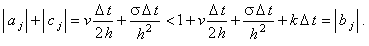 Легко видеть, что для разностной схемы (6.7) достаточное условие сходимости прогонки (4.16) выполняется: