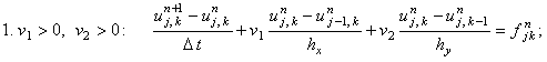 легко видеть, что каждая из них имеет первый порядок аппроксимации и по времени, и по каждой из координат: