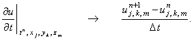 составляющих уравнение (9.1), в точке . Для аппроксимации производной функции u по времени обычно используется