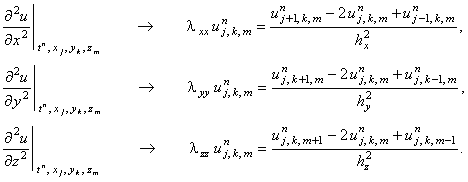 Для аппроксимации производных второго порядка будем использовать разностный оператор (2.12)