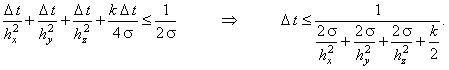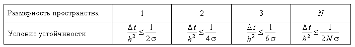 для случаев одномерной и двумерной задач, соответственно), можно получить условие устойчивости явной