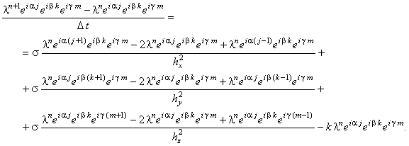 разностной схемы, аппроксимирующей N-мерное дифференциальное уравнение параболического типа: